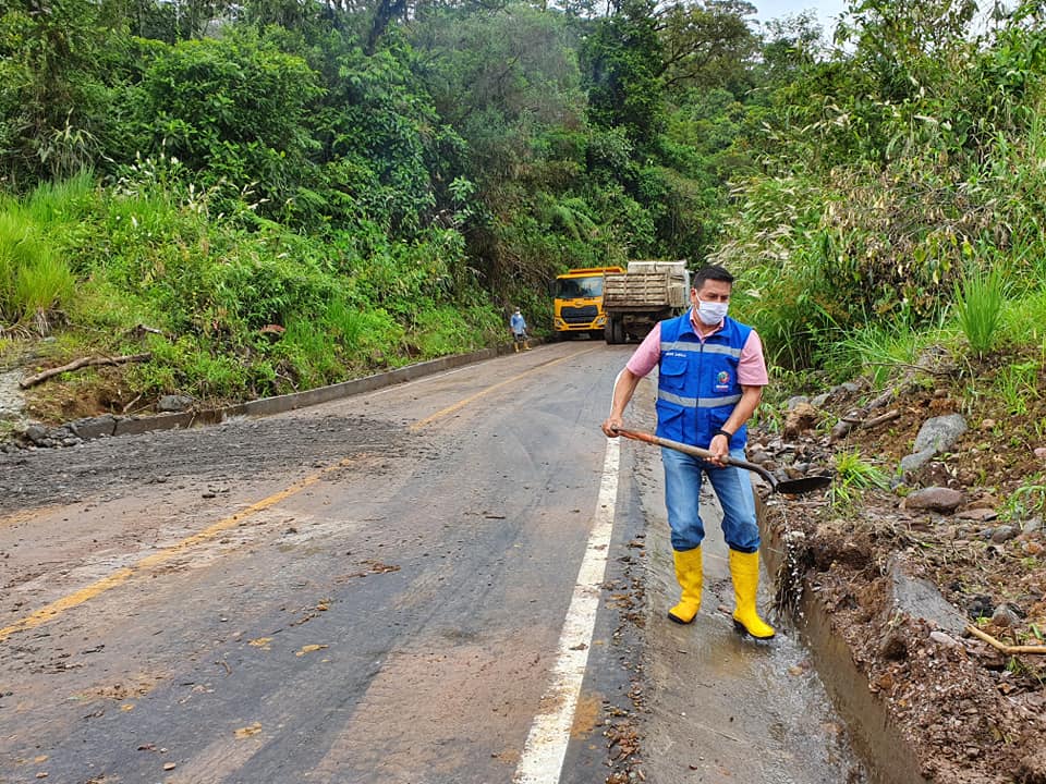 Edgar Zabala Jaramillo, Presidente del GAD Parroquial de Río Negro, informa que se continúa con los trabajos de limpieza y rehabilitación de la vía desde la comunidad Azuay - La México.