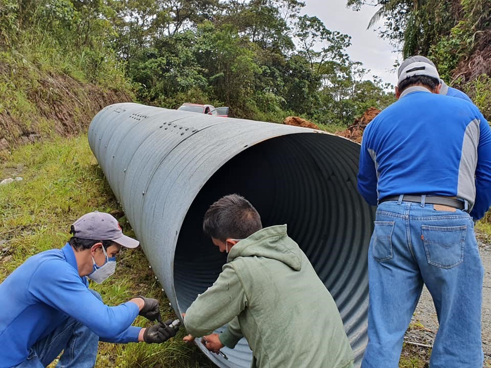 El trabajo mancomunado, permite alcanzar grandes metas. Personal del GADBAS, apoyando en el armazón de los ármicos metálicos (Sector Las Estancias).