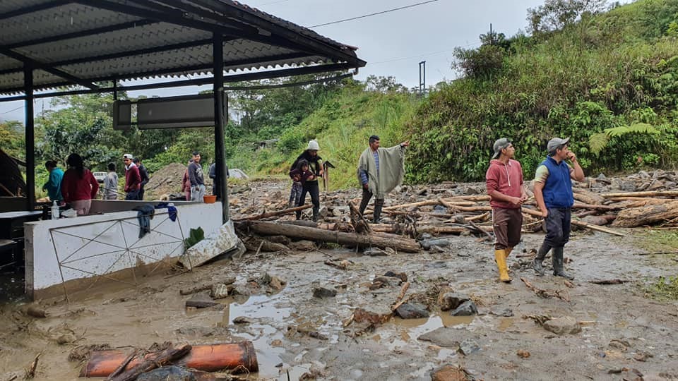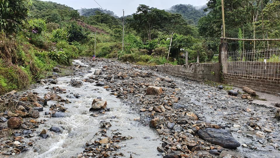 Edgar Zabala Jaramillo, Presidente del Gobierno Parroquial de Río Negro, da a conocer que Las fuentes lluvias del día jueves en la noche ocasionó grandes daños en la vía en el sector de las Estancias. Además dos viviendas fueron afectadas por el aluvión, (Aníbal Fiallos - Francisco Ocaña) como también fue afectada la tubería de conducción del agua potable de consumo humano que abastece a los moradores del sector.