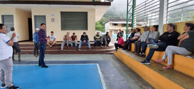 Edgar Zabala Jaramillo (Presidente) conjuntamente con los compañeros Vocales mantienen una reunión de trabajo con moradores del Sector la Floresta, perteneciente al Caserío San Francisco. Manuel Casco (Representante del Sector) solicita se les informe sobre los trabajos que viene realizando do el GADPRN, como también piden se continúe con el afirmado de la vía a los Arrayanes. Informa.