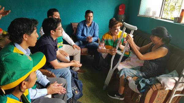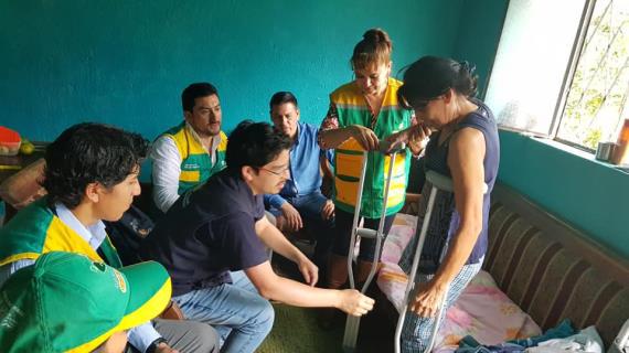 La señora Piedad Toapanta, moradora del Caserío San Francisco, Perteneciente a la Parroquia de RÍO NEGRO, quien perdio su pierna derecha a causa de un accidente de tránsito, recibe ayuda por parte del Gobierno Nacional. Magíster Marco Escobar, Director del Distrito de Salud del Cantón Baños, hoy en horas de la tarde se hizo la entrega del CARNET de Discapacitados y la entrega de los muletos. Gestión que se ha venido coordinando y trabajando de manera conjunta tanto con el Distrito de salud de Baños y el Gobierno Parroquial de Rio Negro. Además el Director, manifestó en su intervención que las visitas y control médico por parte de los profesionales de la salud se swguiran dando atención directamente a domicilio de la paciente. Informa.