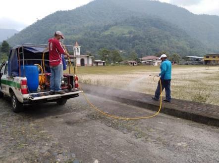 Fumigación en la Parroquia de Rio Negro y sus alrededores para prevención del Coronavirus, Covid-19