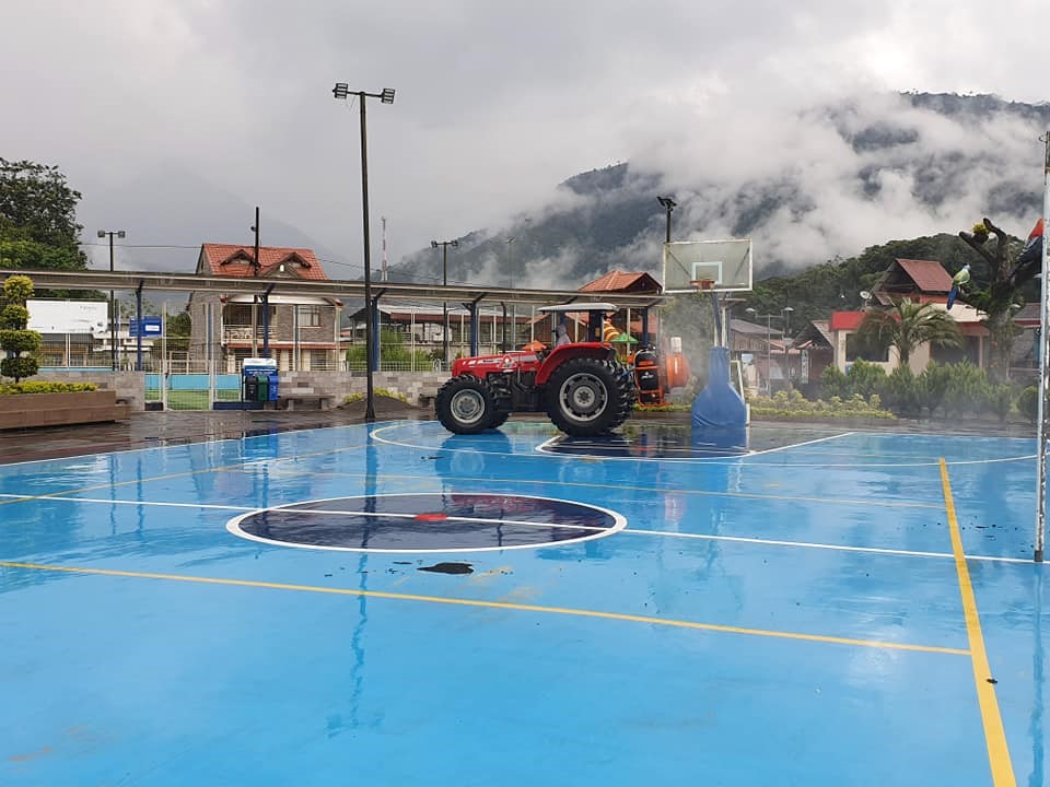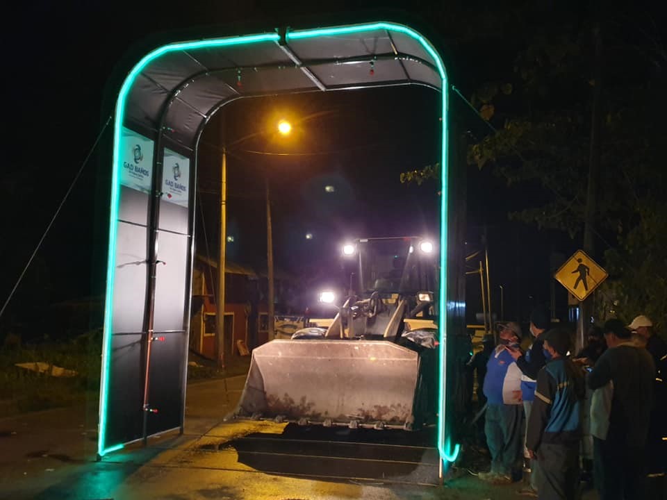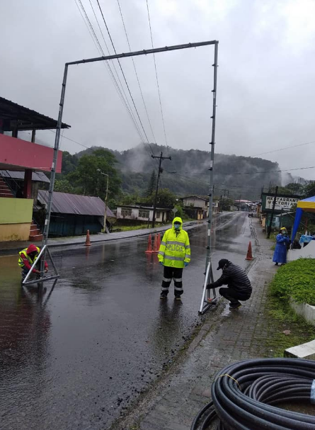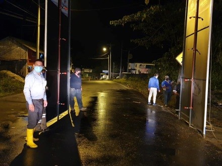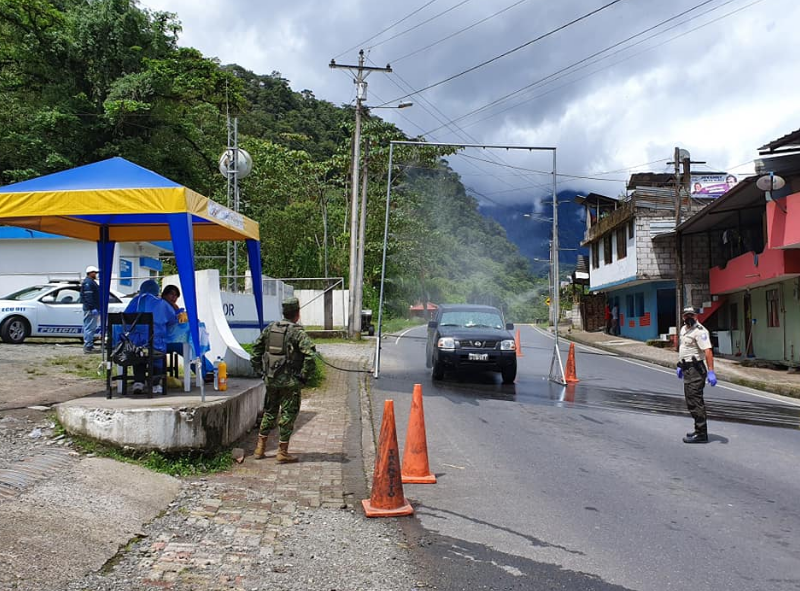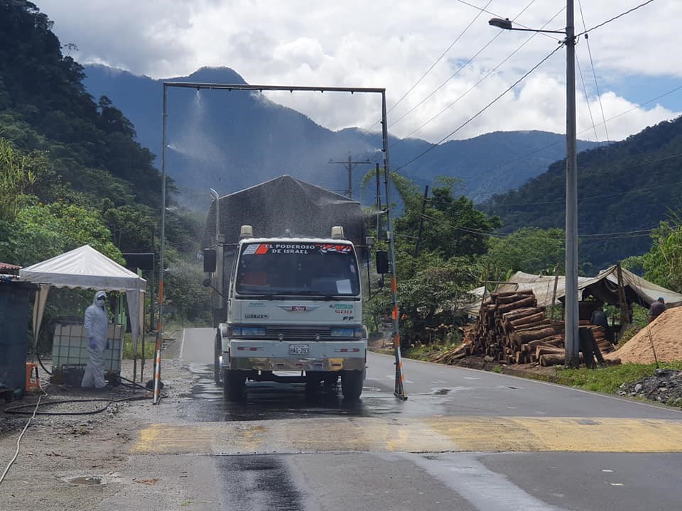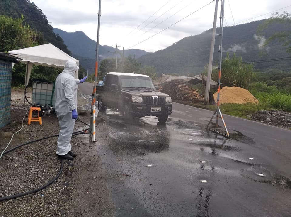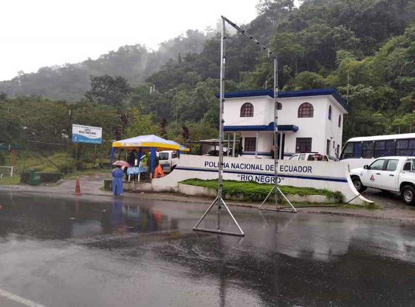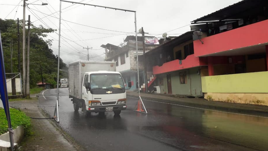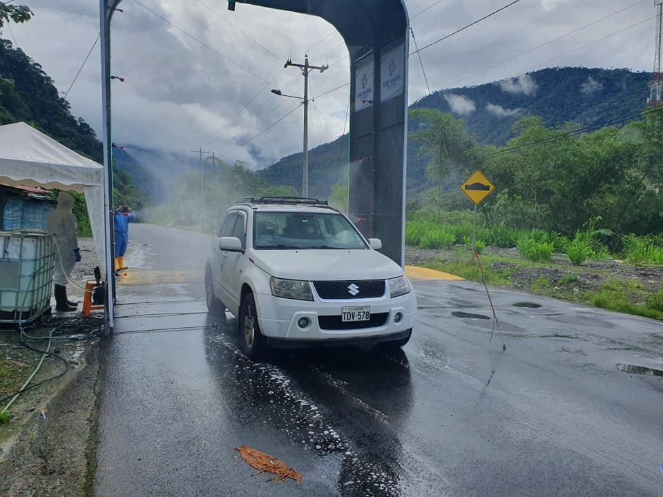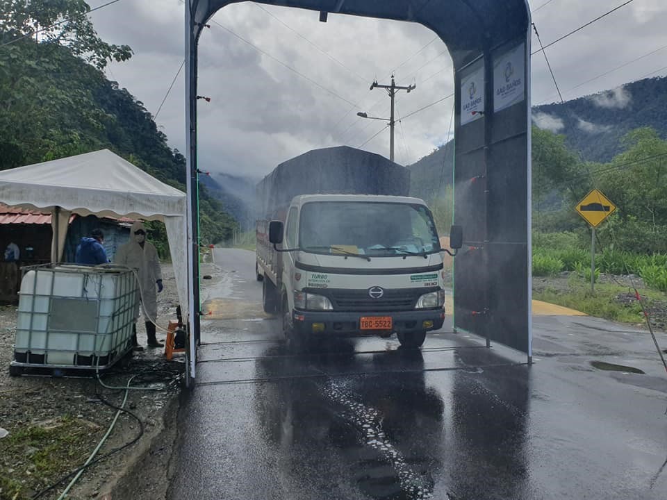 Colocación de arco de desinfección en la parroquia de Rio Negro para vehículos que ingresan desde el oriente a la sierra.