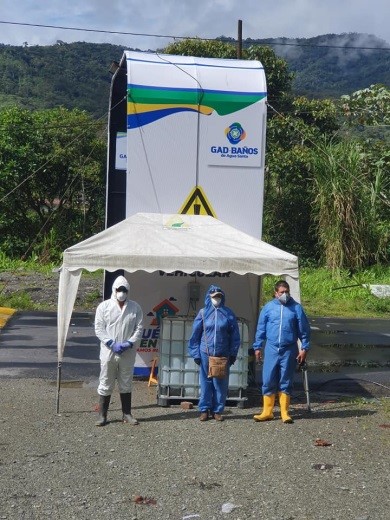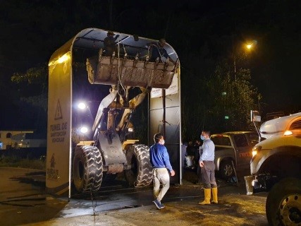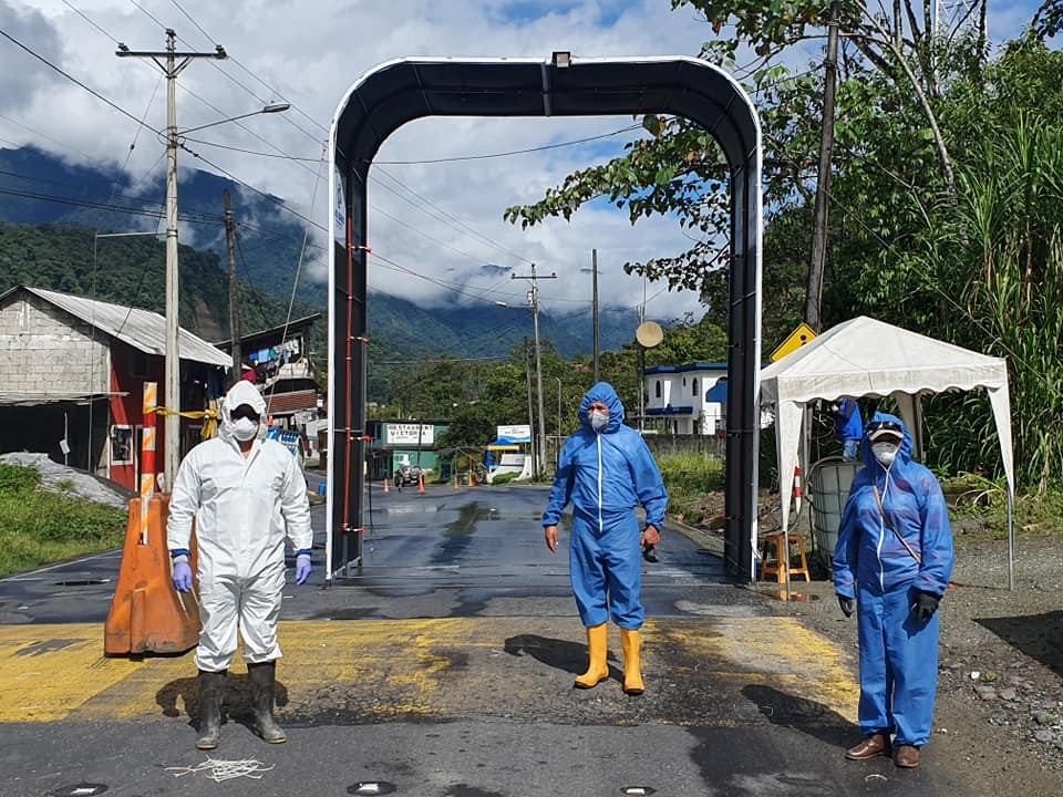 Arco de desinfección en la parroquia de Rio Negro para evitar la propagación del virus covid-19