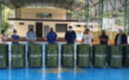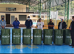 CELEC EP UNIDAD DE NEGOCIO HIDRO AGOYÁN, realizó la entrega de tachos para la recolección de basura al Caserío San Francisco y Centro Parroquial (2). Edgar Zabala Jaramillo, Presidente del Gobierno Parroquial de Río Negro, agradeció por contribuir con la donación de recolectores de basura. Informa.